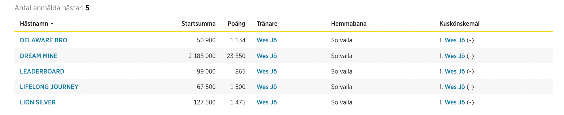 Samtliga hästar som är anmälda till loppet tränas av Jörgen Westholm, och förstapriset är satt till 100.000 kronor. Dream Mine har hittills fyra segrar på fem starter.