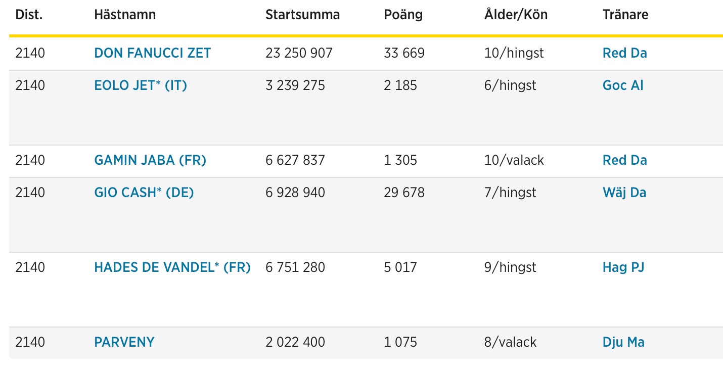 Se anmälningslistan nedan där startspåren blir klara senare i eftermiddag.