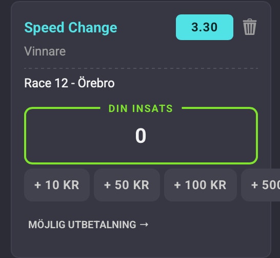 Jag spelar 3 Speed Change som vinnare av lopp 12 till oddset 3.30 hos Coolbet.