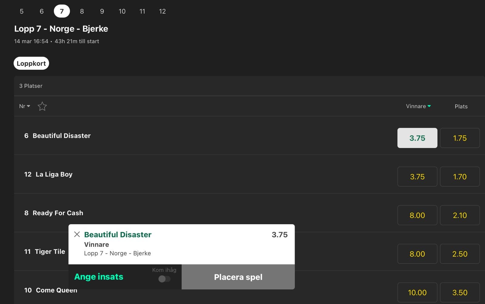 Jag spelar vinnare på Beautiful Disaster till 3.75 hos BET365.