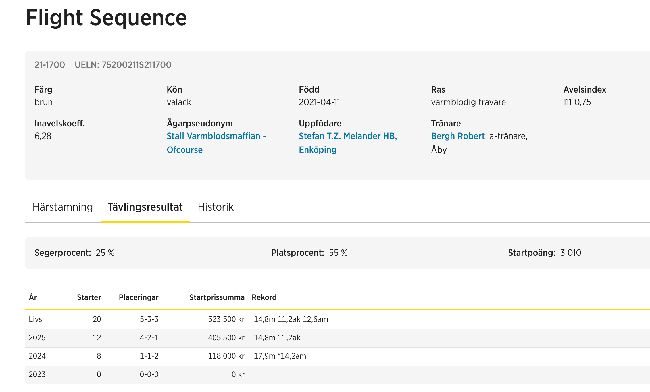 Robert Bergh har fått in ett spännande nyförvärv i stallet. Från Öystein Tjomsland ansluter Flight Sequence som så sent som i juli vann på rikstoton i Skellefteå. Med över halv miljonen insprunget är det ett meriterat nyförvärv som flyttas till Åbytränaren.